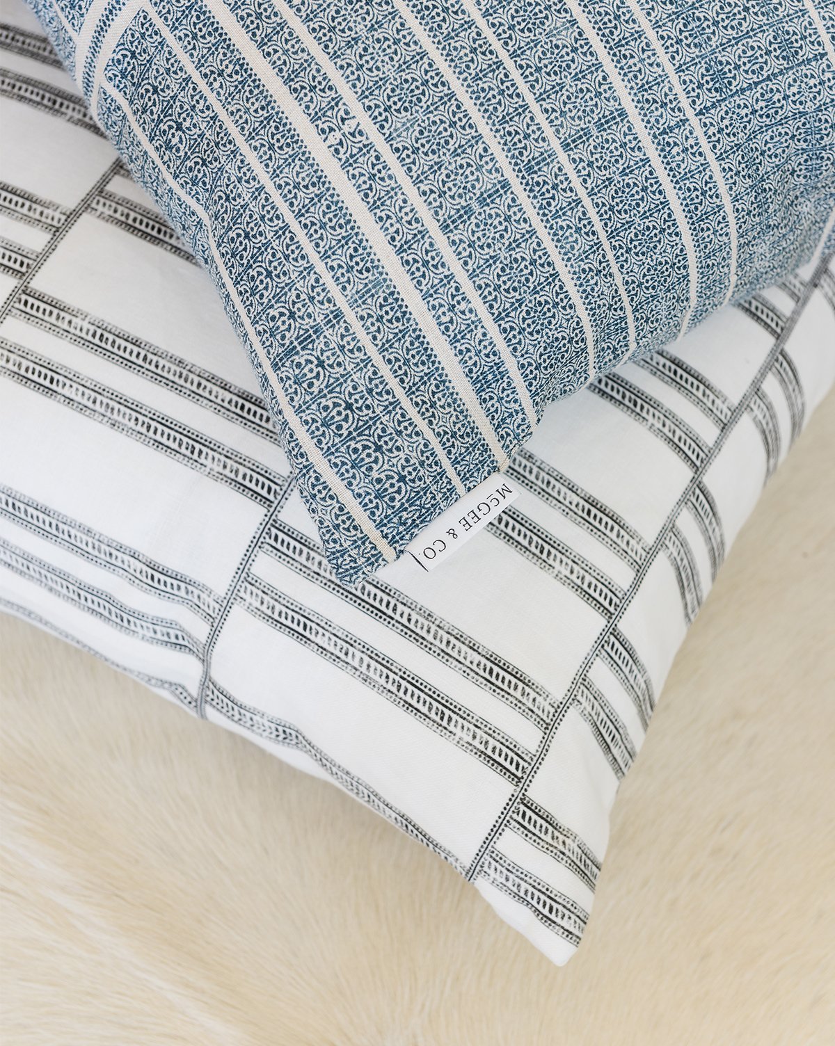 Founded on a mutual love for an elevated relaxed aesthetic, our line of Susan Connor for McGee & Co. is a natural partnership. Instead of feeling busy, the Santi pillow is masterfully calming and structured –– a feat with block printing. Pattern play with this level of detail shows off Susan Connor’s signature aesthetic and gives you something to get lost in. Created through her own proprietary print engraving process in her Brooklyn Studio, this textile is printed with natural, non-toxic materials on European linen, bringing its designer look and feel right into your home.